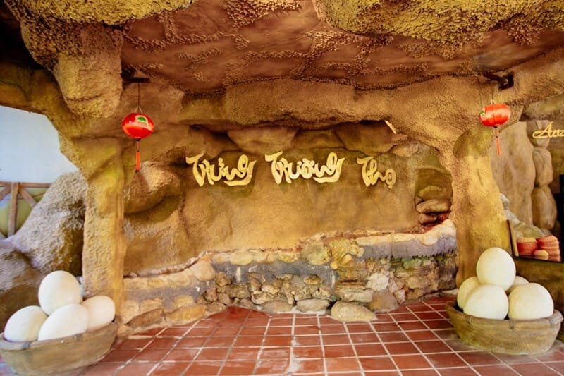 Trứng Trường Thọ là một địa điểm tham quan ấn tượng mà bạn không nên bỏ lỡ khi đến với Suối khoáng nóng Núi Thần Tài. Trứng Trường Thọ là một loại trứng gà nuôi thả tự nhiên tại thôn Phú Túc. Sau đó được tuyển chọn đặc biệt rồi mang đi luộc cùng nước khoáng tại Huyệt Long Hồ.
