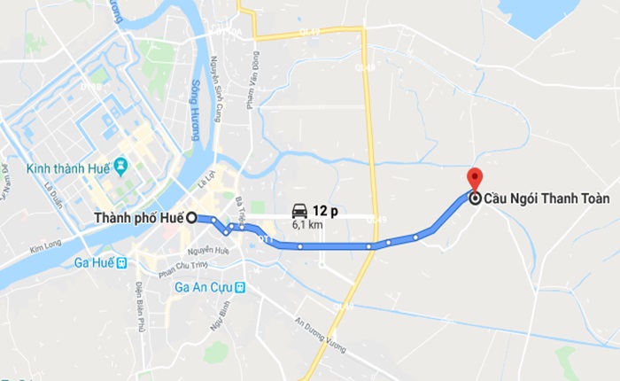 Để đến với di tích cầu ngói Thanh Toàn hay nhiều điểm đến hấp dẫn khác, bạn có thể “bỏ túi” bản đồ du lịch Huế. Thực tế, công trình cầu cổ tọa lạc ở vùng ngoại ô, cách trung tâm thành phố theo hướng Đông Nam khoảng hơn 6km.