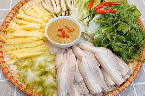Bánh tráng cuốn thịt heo là món ăn thanh đạm nhưng vô cùng hấp dẫn . Thịt heo luộc chín tới, thơm mềm được cuốn cùng bánh tráng dẻo và các loại rau sống. Điểm nhấn của món ăn này chính là nước chấm mắm nêm đậm đà, cay cay, gây nghiện ngay từ lần đầu thưởng thức.